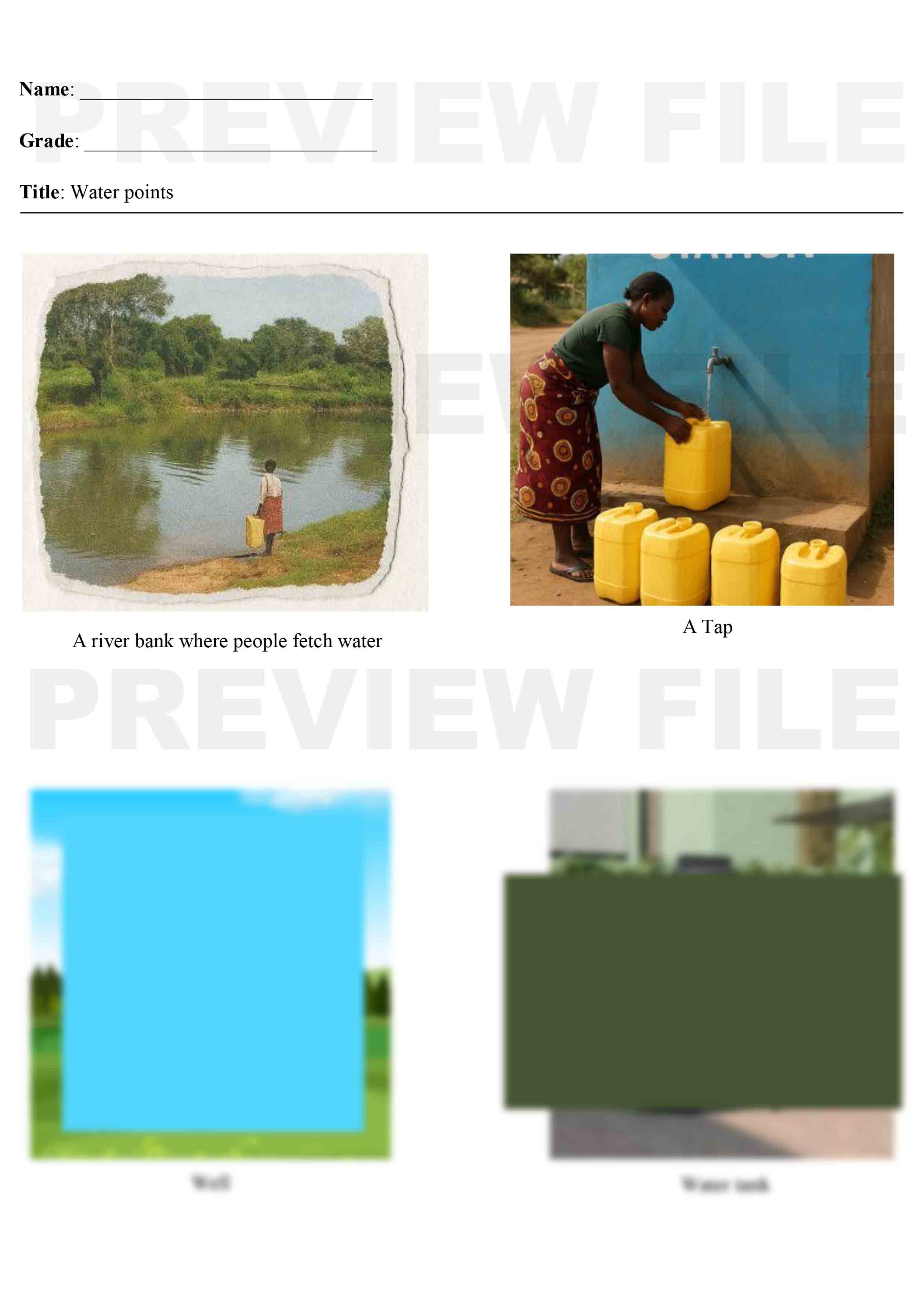 Complete File: Has 2 MS word files & 2 Print ready PDF files with a variety of pictures of Water points